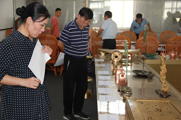 專項(xiàng)賽邀請了澳大利亞著名藝術(shù)家Cherina,青銅器專家、研究員張國茂,銅陵學(xué)院文學(xué)與藝術(shù)傳媒學(xué)院教授劉靜,銅陵職業(yè)技術(shù)學(xué)院副教授、高級(jí)工藝美術(shù)師劉哲軍,中國貿(mào)促會(huì)環(huán)境藝術(shù)委員會(huì)特聘研究員、高級(jí)工藝美術(shù)師、安徽省工藝美術(shù)大師趙敏等擔(dān)任本次評(píng)審專家。評(píng)審期間銅陵市委宣傳部副部長朱淑玲,銅陵市經(jīng)信局總工查錢林親臨現(xiàn)場巡視指導(dǎo)。