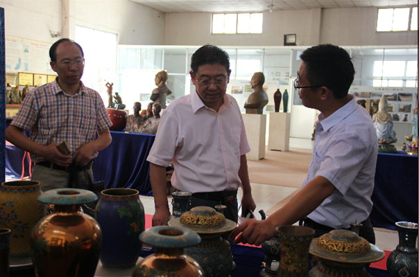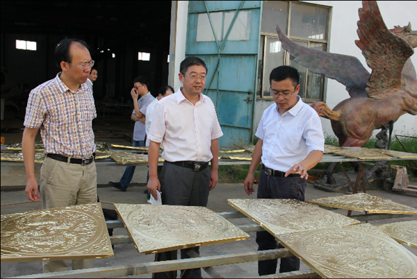崔國(guó)發(fā)副書(shū)記與教授、博士一行深入車(chē)間一線(xiàn)認(rèn)真了解銅工藝生產(chǎn)工藝,隨后在產(chǎn)品展示廳與公司負(fù)責(zé)人就公司發(fā)展和校企合作開(kāi)展情況進(jìn)行了交流。