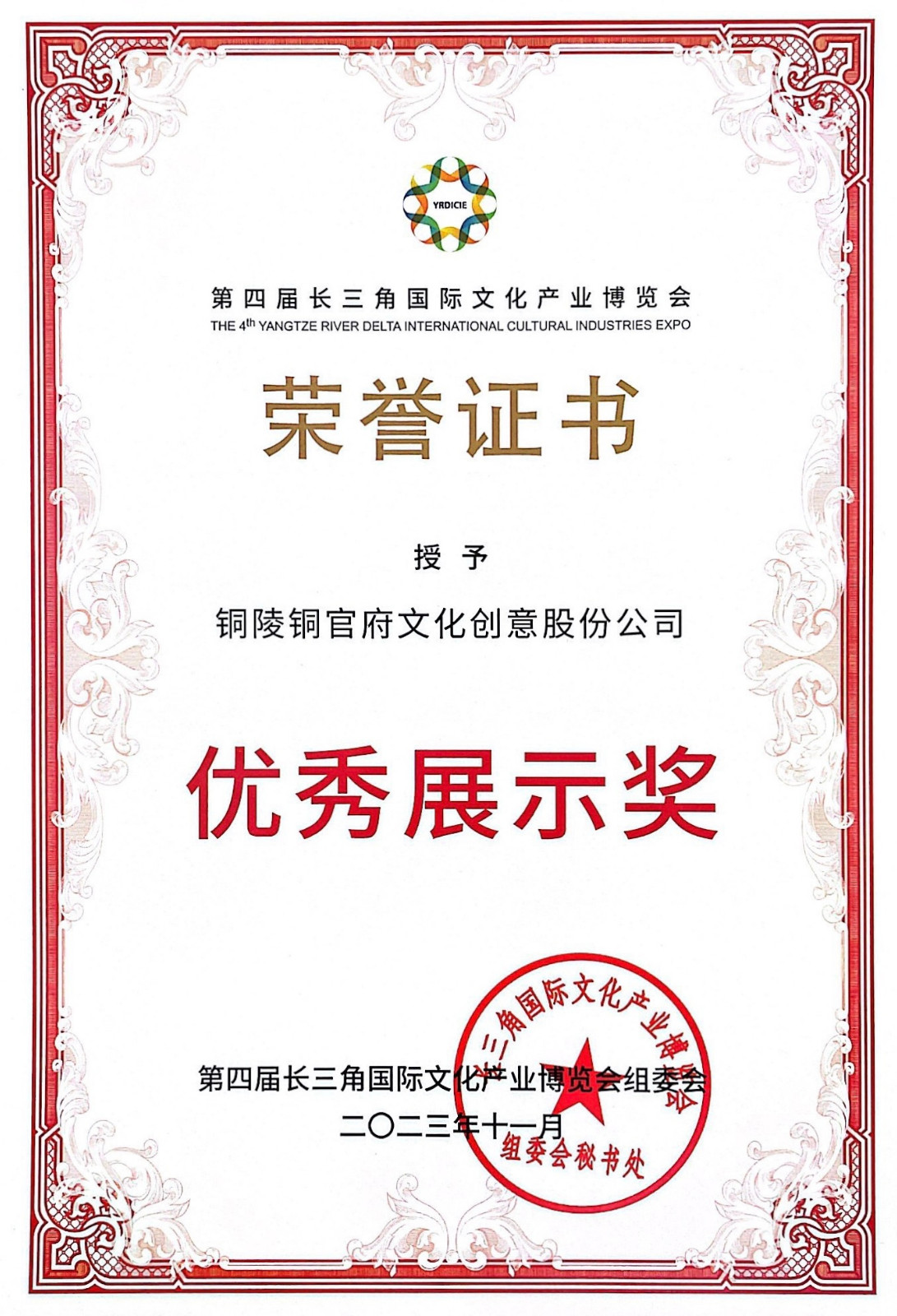 11月16日—19日,第四屆長三角國際文化產業(yè)博覽會在國家會展中心(上海)舉行。我公司焚失法非遺技藝系列作品參展并榮獲“優(yōu)秀展示獎”。展會現(xiàn)場,參觀者零距離欣賞寫真銅藝、彩銅工藝品以及景泰藍工藝品,感受中國傳統(tǒng)文化綻放出來的多彩魅力。銅官府作為文化產業(yè)示范基地,通過焚失法、景泰藍等傳統(tǒng)工藝的傳承與創(chuàng)新,借助國家級、國際化、綜合性的文博會平臺,讓承載中國文化、賦予時代內涵的銅文化走的更廣更遠。