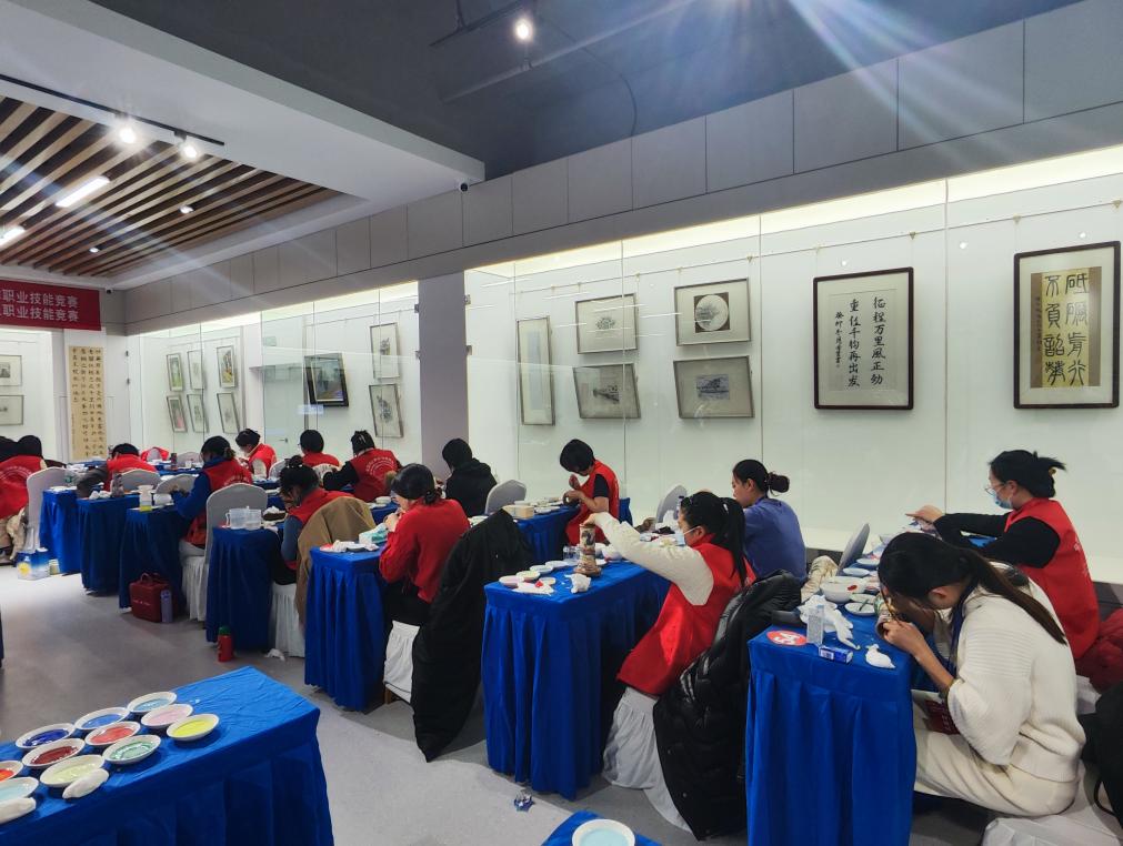 12月25日,2023年全國行業(yè)職業(yè)技能競賽“銅官府”全國景泰藍制作工職業(yè)技能競賽總決賽在銅陵職業(yè)技術(shù)學(xué)院順利舉行,副市長楊文萍和中國輕工珠寶中心副主任林旭東致辭、市委副書記、政法委書記昌宏梅宣布總決賽開幕。開幕式后領(lǐng)導(dǎo)和嘉賓們到巡視比賽現(xiàn)場,鼓勵參賽選手賽出好成績。